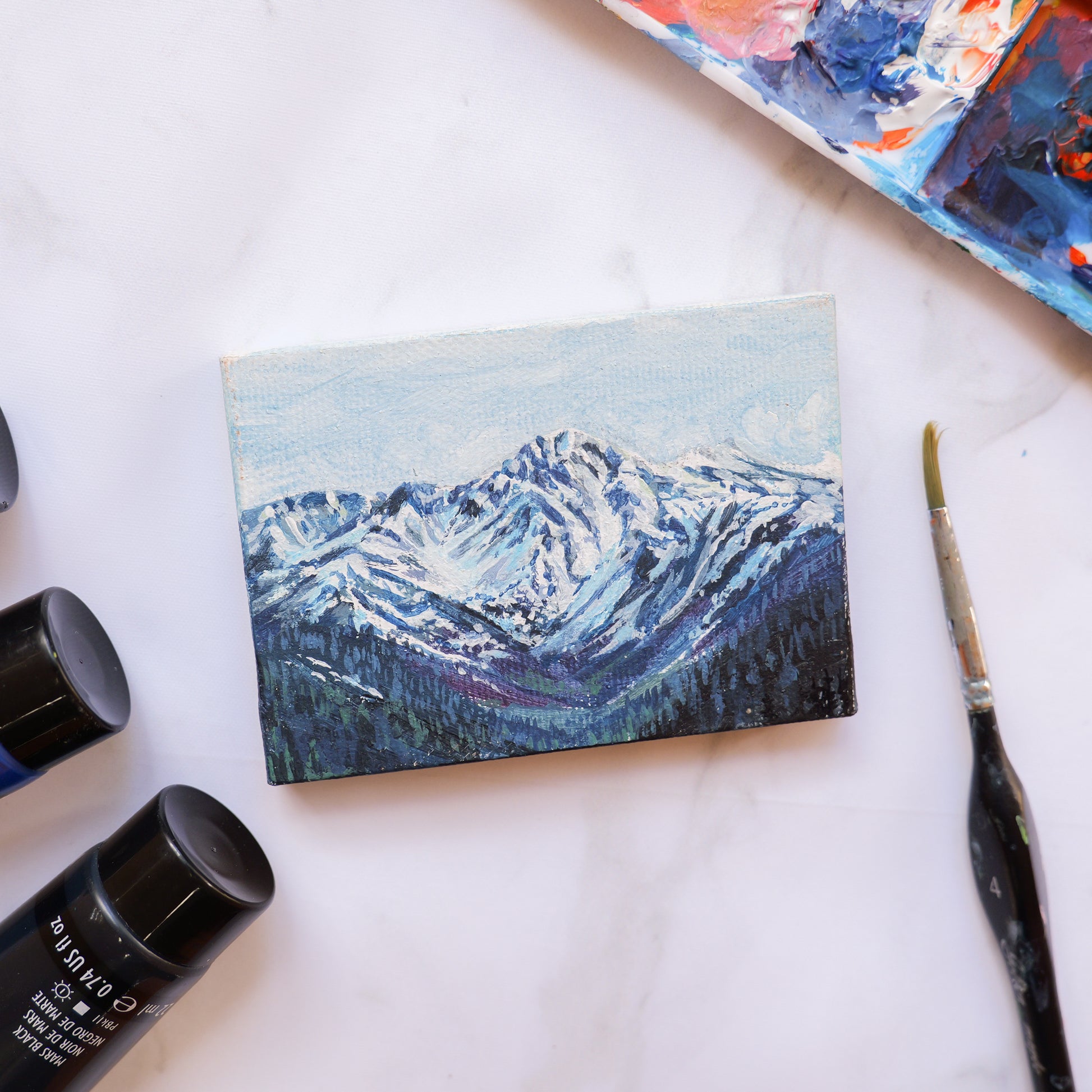 This mini mountain painting is based on a photo I took in Olympic National Park. It was painted on a 2"x 3.5" mini canvas.